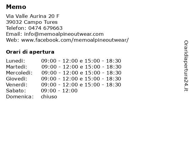 | Venerdi | 09:00-12:00 e 15:00-18:30 |