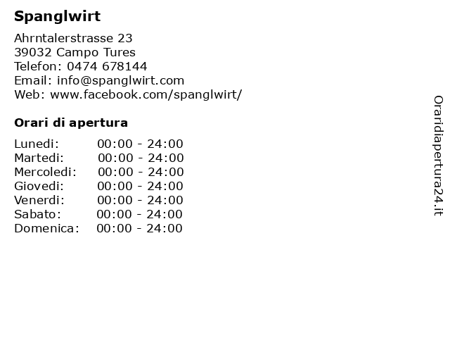 1 Hotel Spanglwirt (Ristorante) (distanza: 0,02 km) Via Valle Aurina 23, 39032 Campo Tures (ristorante), bar, bere, hotel, mangiare, pizzeria, ristorante, spanglwirt, specialitŕ, stuzzicheria 2 Hotel Spanglwirt (Bar) (distanza: 0,02 km) Via Valle Aurina 23, 39032 Campo Tures (bar), bar, bere, hotel, mangiare, pizzeria, ristorante, spanglwirt, specialitŕ, stuzzicheria 3 Hotel Spanglwirt (distanza: 0,05 km) Via valle aurina 23, 39032 Campo Tures alberghi, hotel, spanglwirt 4 Leimgruber Panificio Alimentari (distanza: 0,04 km) Via Valle Aurina 19, 39032 Campo Tures alimentari, cibo, forno, leimgruber, pane, panificio, pizza, prodotti, taralli 5 Cafč Hugo (distanza: 0,04 km) Via Valle Aurina 19, 39032 Campo Tures bar, bere, cafč, hugo, mangiare, pizzeria, ristorante, specialitŕ, stuzzicheria 6 |