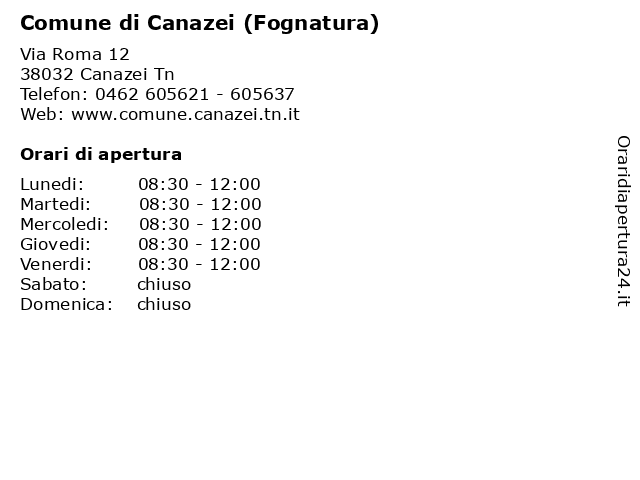 | Venerdi | 08:30-12:00 |