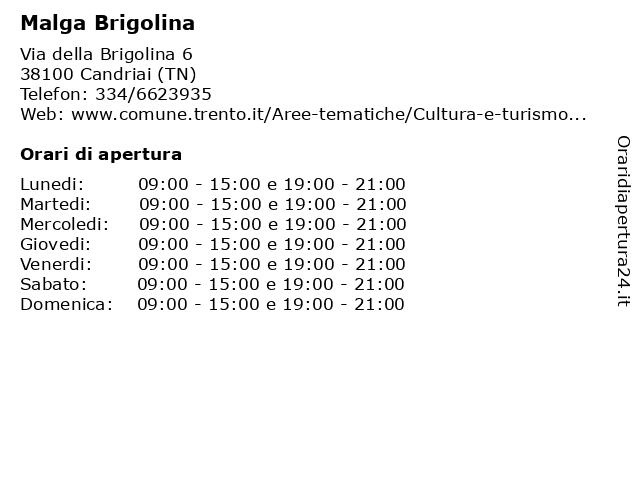 Domenica | 09:00-15:00 e 19:00-21:00 |
