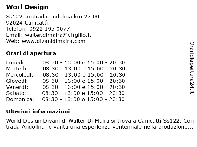 | Sabato | 08:30-13:00 e 15:00-20:30 |