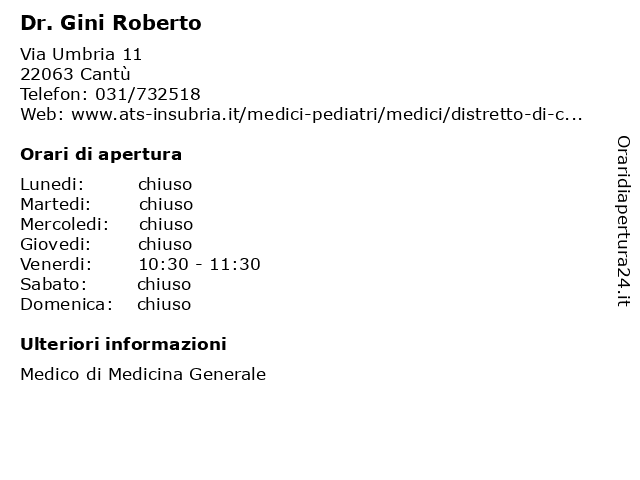 1 Dr. Gini Roberto (distanza: 0,94 km) Via S. Giuseppe 26, 22063 Cantù (CO) ambulatori, analisi, cura della persona, cure, dr., gini, medici, medicina, roberto, sanità, visite mediche 2 Dr. Gini Roberto (distanza: 1,31 km) Via Alla Chiesa snc, 22063 Cantù (dr., ambulatorio, ambulatorio comunale, cura, dottore, dottoressa, dr., gini, gini), medico, pazienti, roberto, visite 5 Amici Per La Pelle Snc Di Testa Simona e Gini Alberto (distanza: 11,53 km) Via Guffanti Romolo 2/d, 22070 Bulgarograsso alberto, amici, articoli, comm, dett, gini, pelle, simona, testa, vari 6 Dr. Gini Riccardo (distanza: 11,55 km) Via Manzoni 3, 22079 Villa Guardia ambulatori, analisi, cura della persona, cure, dr., gini, medici, medicina, riccardo, sanità, visite mediche |
