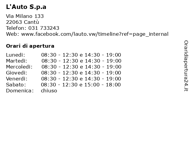 | Sabato | 08:30-12:30 e 15:00-18:00 |
