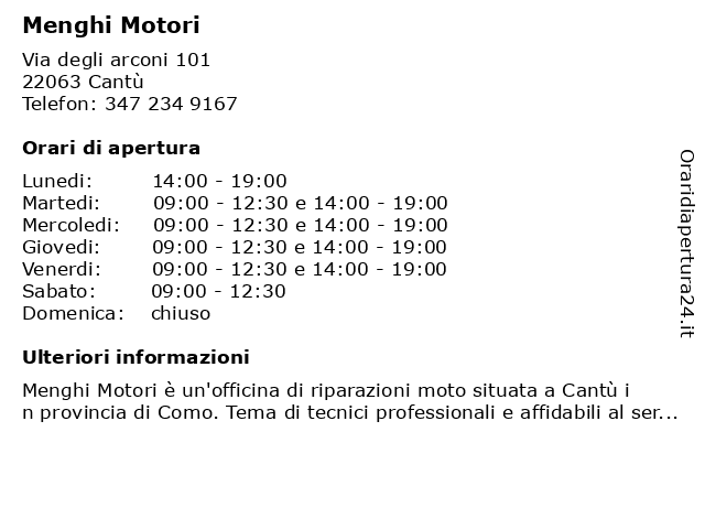 1 Menghi Motori Di Menghini Stefano (distanza: 0,98 km) Via Arconi 101, 22063 Cantu' menghi, menghini, motocicli, motori, rivend, stefano 2 Valtorta Enrico Officina Rettifica Motori (distanza: 1,98 km) Via borghi 11, 22060 Cucciago enrico, motori, officina, rettifica, valtorta 3 Techno Motori Srl - Vendite (distanza: 5,55 km) Via del Lavoro 32, 22100 Como auto, automobilista, motori, servizi, srl, techno, vendite 4 Techno Motori Srl - Assistenza (distanza: 5,55 km) Via del Lavoro 32, 22100 Como assistenza, auto, automobilista, motori, servizi, srl, techno 5 Techno Motori (Vendite) (distanza: 6,14 km) Via dei Giovi 54, 22070 Grandate (vendite), motori, nuovo, officina, riparazione, techno, usato, vendita auto 6 Techno Motori (Assistenza) (distanza: 6,14 km) Via dei Giovi 54, 22070 Grandate (assistenza), motori, nuovo, officina, riparazione, techno, usato, vendita auto |