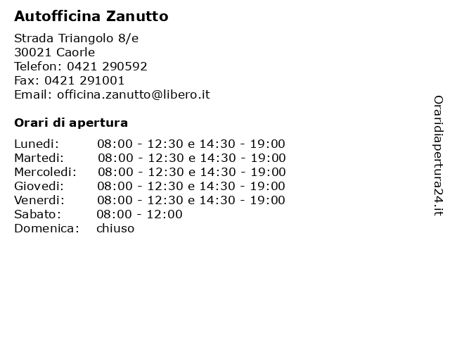 | Lunedi | 08:00-12:30 e 14:30-19:00 |