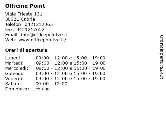 | Venerdi | 09:00-12:00 e 15:00-19:00 |