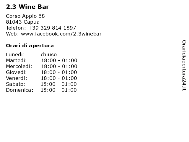1 Bed & Wine Vigne Chigi (distanza: 0,13 km) Vicolo Paolo Bottoni 15, 81043 Capua (CE) amici, bar, bed, chigi, cibo, vigne, vini, wine 2 Gradivino Vini & Sapori Wine Club (distanza: 0,18 km) Corso Appio snc, 81043 Capua bar, club, cucina, enoteca, food, gradivino, sapori, vineria, vini, wine 3 Hourus Cafè Wine Bar (distanza: 4,57 km) Via Eugenio Della Valle 38, 81055 Santa Maria Capua Vetere bar, cafè, cibo, gastronomia, generi alimentari, hourus, mangiare, wine 4 Free Time Lounge and Wine Bar (distanza: 8,16 km) Via Nocelle sn, 81050 Portico di Caserta and, bar, bere, caffetteria, free, locale, lounge, mangiare, time, wine 5 Vin Topic Wine & Food (distanza: 8,41 km) Via XXV Aprile 122/124, 81022 Caserta bar, bere, caffetteria, food, gelateria, locale, mangiare, pasticceria, stuzzicheria, topic, vin, wine 6 Hwine Harrods Wine (distanza: 11,09 km) Via Colombo 19, 810033 Caserta harrods, hwine, prodotti dolciari, prodotti enogastronomici, vino in bottiglia, wine |
