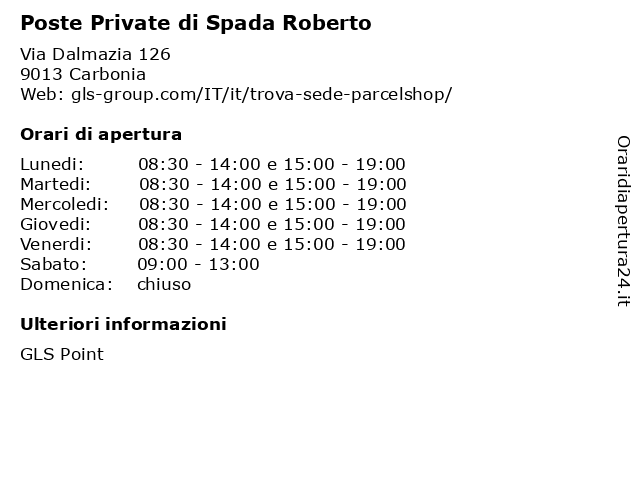 | Mercoledi | 08:30-14:00 e 15:00-19:00 |