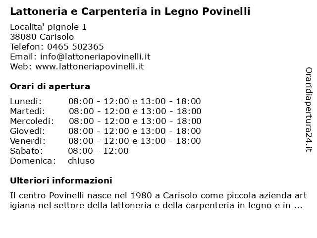 | Lunedi | 08:00-12:00 e 13:00-18:00 |