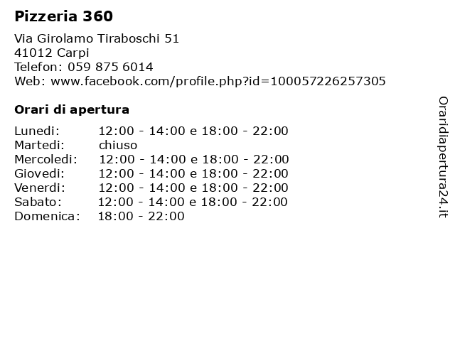 Lunedi | 12:00-14:00 e 18:00-22:00 |