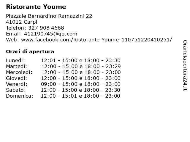 Mercoledi | 12:00-15:00 e 18:00-23:00 |