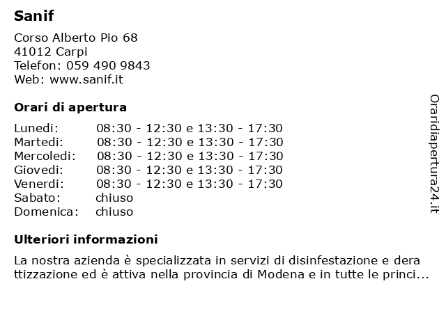 Lunedi | 08:30-12:30 e 13:30-17:30 |
