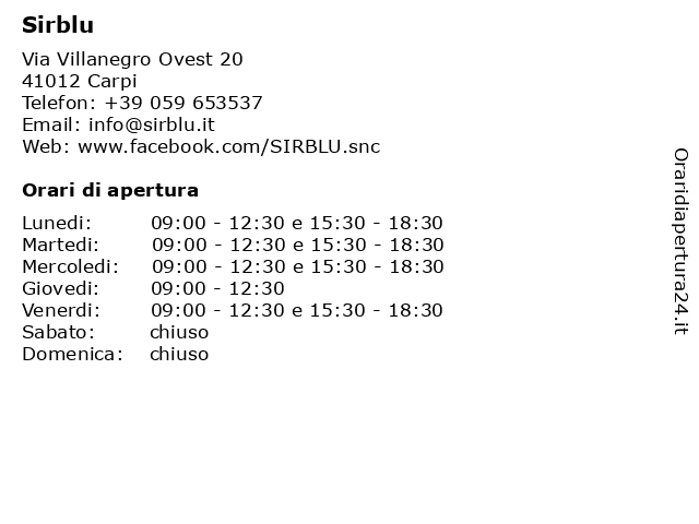 Lunedi | 09:00-12:30 e 15:30-18:30 |