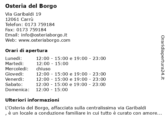 Lunedi | 12:00-15:00 e 19:00-23:00 |