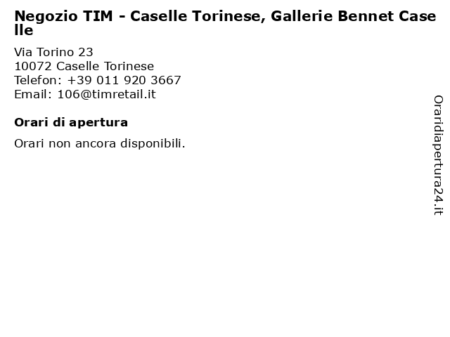 | Chiama Negozio TIM - Caselle Torinese, Gallerie Bennet Caselle | |
