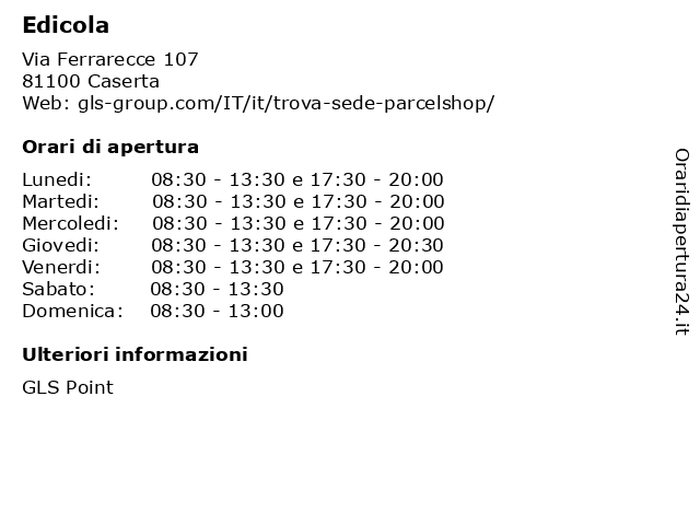 | Lunedi | 08:30-13:30 e 17:30-20:00 |