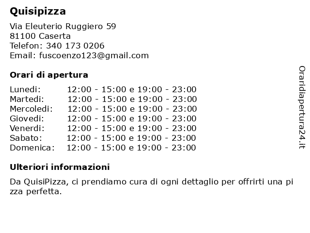 | Sabato | 12:00-15:00 e 19:00-23:00 |