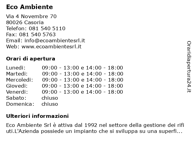| Lunedi | 09:00-13:00 e 14:00-18:00 |