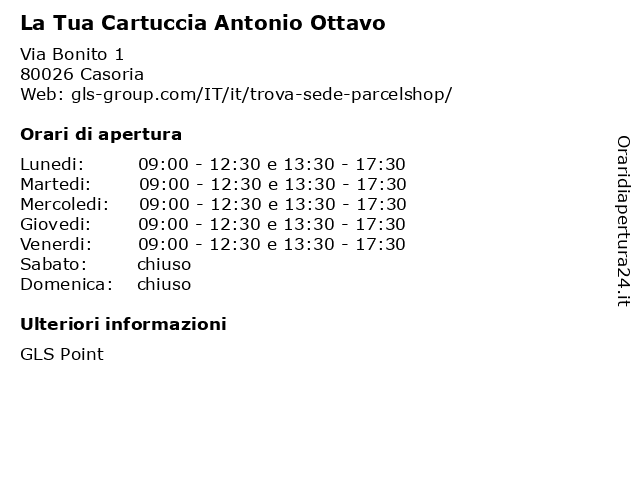| Venerdi | 09:00-12:30 e 13:30-17:30 |