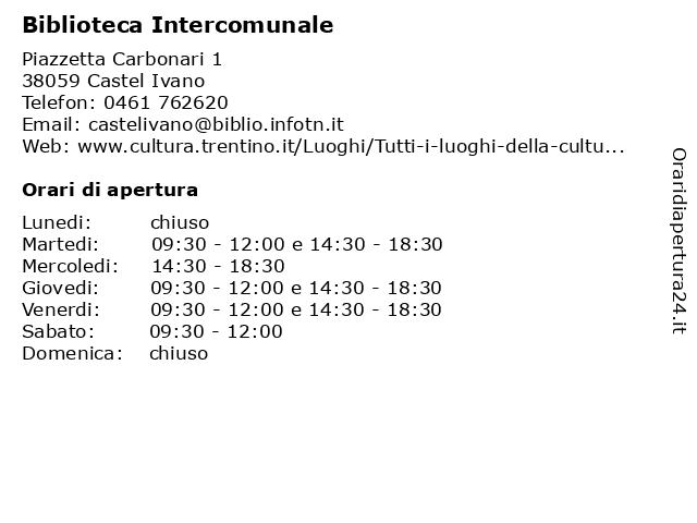 Martedi | 09:30-12:00 e 14:30-18:30 |