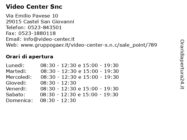 Lunedi | 08:30-12:30 e 15:00-19:30 |