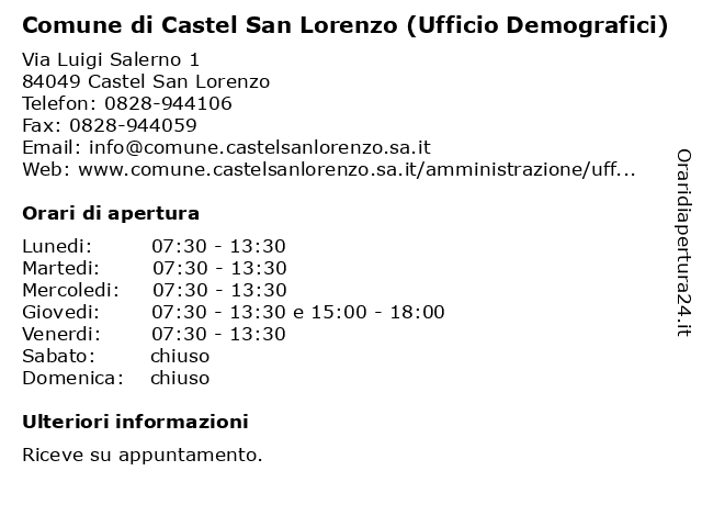 Tag di ricerca per Comune di Castel San Lorenzo (Ufficio Demografici):san, servizi, castel, (ufficio, ufficio, comune, lorenzo, demografico, demografici) |