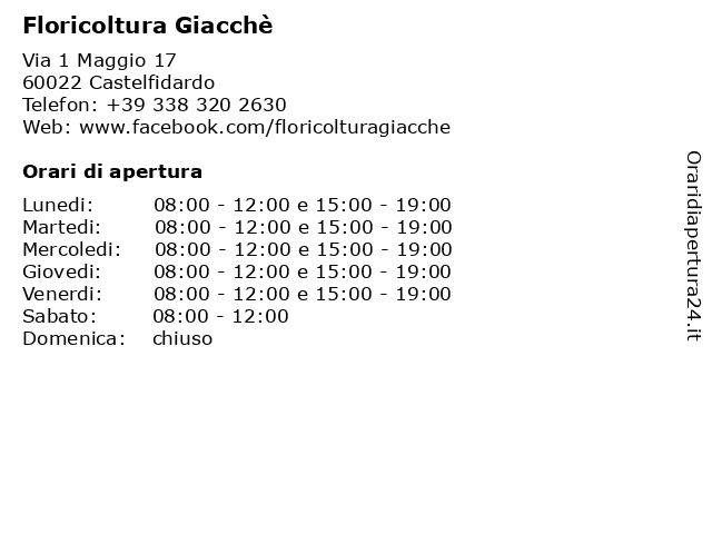 | Giovedi | 08:00-12:00 e 15:00-19:00 |