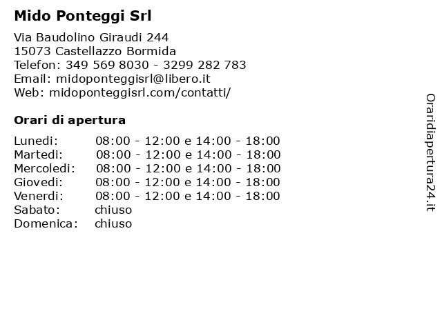 | Lunedi | 08:00-12:00 e 14:00-18:00 |