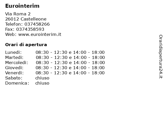 Lunedi | 08:30-12:30 e 14:00-18:00 |