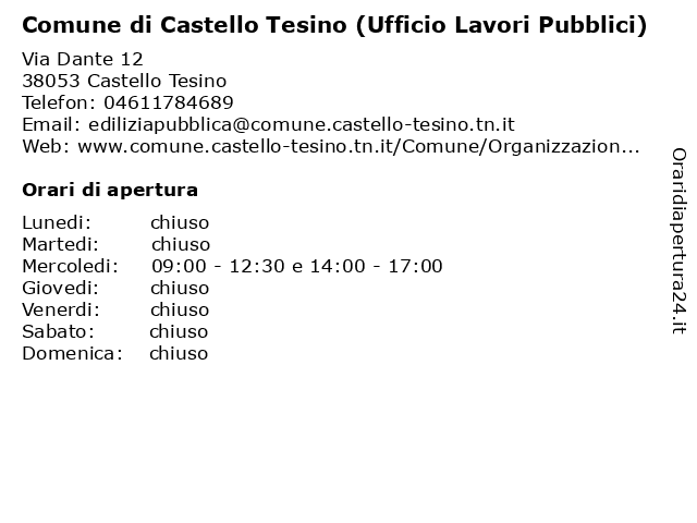 1 Comune di Cinte Tesino (Ufficio Assessore con delega a : Lavori pubblici , Manutenzioni strade e Patrimonio comunale escluso quello forestale) (distanza: 1,66 km) via Don Dalmonego 57, 38050 Cinte Tesino (ufficio, assessore, cinte, comunale, comunali, comune, con, delega, di, escluso, forestale, lavori, manutenzioni, patrimonio, pubblici, quello, servizi, strade, tesino, ufficio 2 Comune di Cinte Tesino (Ufficio Servizio Tecnico : Lavori pubblici , Gestione servizi esteralizzati , Cantiere comunale , Patrimonio e demanio , Urbanistica , Edilizia pubblica e privata) (distanza: 1,66 km) via Don Dalmonego 57, 38050 Cinte Tesino cantiere, cinte, comunale, comune, demanio, di, edilizia, esteralizzati, gestione, lavori, patrimonio, privata, pubblica, pubblici, servizi, servizio, tecnico, tesino, ufficio, urbanistica 3 Comune di Castel Ivano (Uffici Servizio Tecnico - Lavori Pubblici, Patrimonio, Ufficio Edilizio) (distanza: 8,42 km) Via dei Molini 44, 38059 Castel Ivano (uffici, castel, castel ivano, comune, di, edilizia, edilizio), ivano, lavori, lavori pubblici, patrimonio, pubblici, servizi comunali, servizio, servizio tecnico, tecnico, uffici comunali, ufficio, ufficio edilizio 4 Comune di Castelnuovo (Ufficio Assessore ai lavori pubblici, cantiere comunale, ambiente, rapporti con il cittadino) (distanza: 10,84 km) Piazza Municipio 1, 38050 Castelnuovo (ufficio, ai, ambiente, amministrazione, amministrazione trasparente, assessore, cantiere, castelnuovo, cittadino, comunale, comunali, comune, con, di, il, lavori, pubblici, rapporti, servizi, ufficio 5 Comune di Canal San Bovo (Ufficio Tecnico : Lavori Pubblici ed Edilizia privata) (distanza: 12,85 km) Via Roma 58, 38050 Canal San Bovo (ufficio, amministrazione, amministrazione trasparente, assessore, bovo, canal, comunale, comunali, comune, di, ed, edilizia, giunta comunale, lavori, privata, pubblici, san, servizi, tecnico, ufficio 6 Comunità Valsugana e Tesino,Lavori Pubblici (distanza: 13,27 km) Piazzetta Ceschi 1, 38051 Borgo Valsugana (TN) assistenza, comunità, lavori, pubblici, servizi, tesino, valsugana |