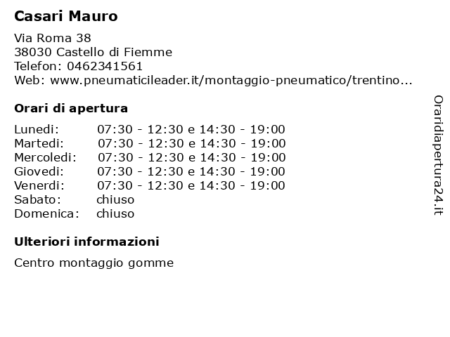 Lunedi | 07:30-12:30 e 14:30-19:00 |