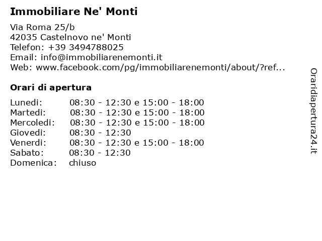 Lunedi | 08:30-12:30 e 15:00-18:00 |