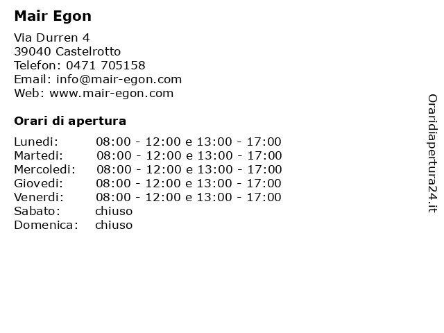 Lunedi | 08:00-12:00 e 13:00-17:00 |