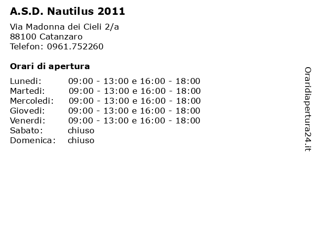 | Lunedi | 09:00-13:00 e 16:00-18:00 |