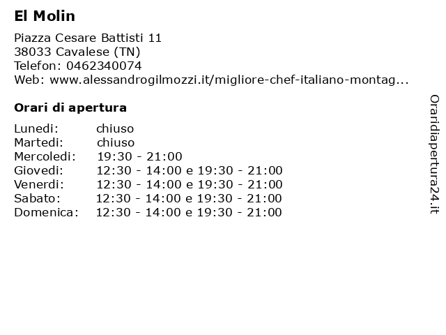 Domenica | 12:30-14:00 e 19:30-21:00 |