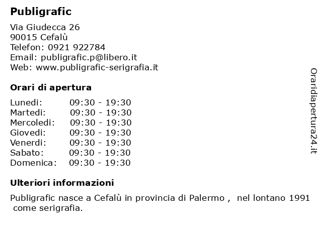 | Venerdi | 09:30-19:30 |