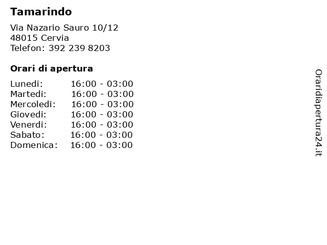 1 Tamarindo Srl (distanza: 0,65 km) Via Nazario Sauro 10/12, 48015 Cervia bar, birrerie, paninoteche, tamarindo 2 Playa Tamarindo (distanza: 24,70 km) Via Dati 47/d, 47922 Viserba a Mare bar, lido, mare, playa, spiagge, tamarindo, vacanze |