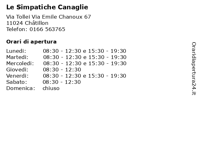 | Lunedi | 08:30-12:30 e 15:30-19:30 |