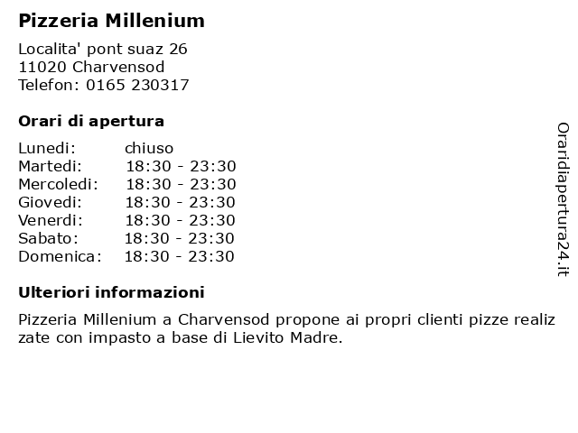 | Sabato | 18:30-23:30 |
