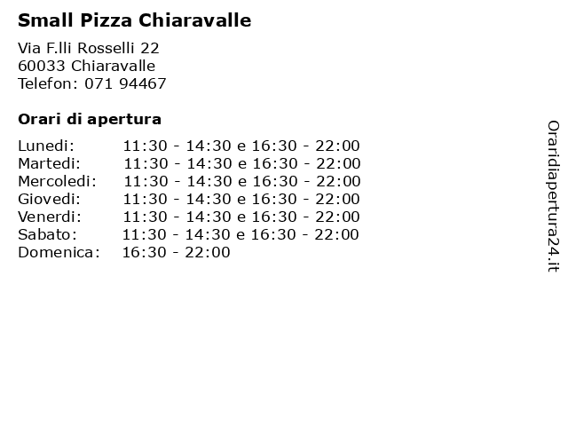 Lunedi | 11:30-14:30 e 16:30-22:00 |