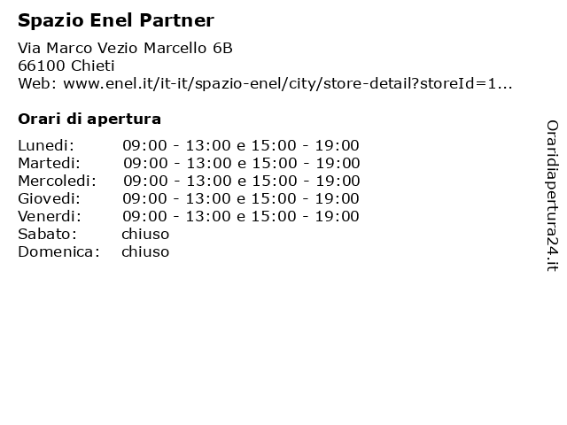 | Venerdi | 09:00-13:00 e 15:00-19:00 |
