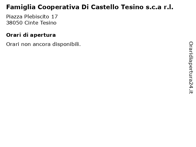 1 Famiglia Cooperativa (Orario Estivo) (distanza: 1,60 km) Via Dante 35, 38053 Castello Tesino (orario, cooperativa, estivo), famiglia, gastronomia, generi alimentari, latticini, macelleria, ortofrutta, panetteria, salumeria, surgelati 2 Famiglia Cooperativa (distanza: 1,64 km) Via Pelloso 13, 38053 Castello Tesino alimentari, castello, comm, cooperativa, dett, famiglia, prod, tesino, vari 3 Famiglia Cooperativa (distanza: 6,60 km) Via B.C. della Mercede 41, 38050 Villa Agnedo cooperativa, famiglia, gastronomia, generi alimentari, latticini, macelleria, ortofrutta, panetteria, salumeria, surgelati 4 Castello di Castel Ivano (distanza: 6,69 km) Via Al Castello 1, 38059 Castel Ivano castel, castello, di, ivano 5 Famiglia Cooperativa (distanza: 8,46 km) Piazza Maggiore 32, 38050 Scurelle cooperativa, famiglia, gastronomia, generi alimentari, latticini, macelleria, ortofrutta, panetteria, salumeria, surgelati 6 Famiglia Cooperativa (distanza: 8,46 km) Piazza Maggiore s.n.c., 38050 Samone cooperativa, famiglia, gastronomia, generi alimentari, latticini, macelleria, ortofrutta, panetteria, salumeria, surgelati |