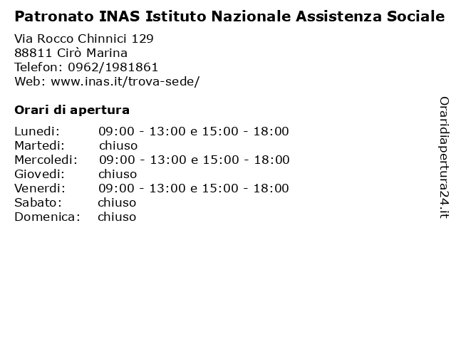 1 Patronato Enapa (distanza: 0,21 km) Via Togliatti 51, 88811 Cirò Marina agricoltura, confagricoltura, enapa, patronato 2 Patronato Se.N.A.S. (distanza: 31,48 km) Via Napoli 26, 88900 Crotone (KR) accompagnamento, disoccupazione, inabilità, indennità di malattia, invalidità, maternità, patronato, pensione di vecchiaia, pensioni supplementari, posizione assicurativa, reversibilità, ricongiunzione, ricostituzione, se.n.a.s., supplementi di pensione 3 Patronato Epasa-Itaco (distanza: 31,57 km) Via Firenze 34, 88900 Crotone (KR) accompagnamento, disoccupazione, epasa, inabilità, indennità di malattia, invalidità, itaco, maternità, patronato, pensione di vecchiaia, posizione assicurativa, reversibilità, ricongiunzione, ricostituzione, supplementi di pensione 4 Epaca (distanza: 31,67 km) Via Manna 29, 88900 Crotone accompagnamento, disoccupazione, epaca, inabilità, indennità di malattia, invalidità, maternità, patronato, pensione di vecchiaia, posizione assicurativa, reversibilità, ricongiunzione 5 Patronato INPAS (distanza: 31,68 km) Via XXV Aprile 62, 88900 Crotone accompagnamento, disoccupazione, inabilità, indennità di malattia, inpas, invalidità, maternità, patronato, pensione di vecchiaia, pensioni supplementari, posizione assicurativa, reversibilità, ricongiunzione, ricostituzione, supplementi di pensione 6 Patronato INAS (distanza: 39,30 km) VIA PETRARCA 1, 87055 SAN GIOVANNI IN FIORE accompagnamento, disoccupazione, inabilità, inas, indennità di malattia, invalidità, maternità, patronato, pensione di vecchiaia, pensioni supplementari, posizione assicurativa, reversibilità, ricongiunzione, ricostituzione, supplementi di pensione |