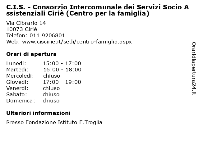 1 C.I.S. - Consorzio Intercomunale dei Servizi Socio Assistenziali Cirič (Sede Territoriale 1) (distanza: 0,00 km) Via Cibrario 14, 10073 Cirič (sede, 1), assistenza domiciliare, assistenza educativa territoriale, assistenziali, c.i.s., cirič, cis, consorzio, consorzio intercomunale servizi sociali, dei, intercomunale, servizi, socio, territoriale 2 C.I.S. - Consorzio Intercomunale dei Servizi Socio Assistenziali Cirič (Sportello di informazione sociale) (distanza: 0,29 km) Piazza Castello 20, 10073 Cirič (sportello, assistenza domiciliare, assistenza educativa territoriale, assistenziali, c.i.s., cirič, cis, consorzio, consorzio intercomunale servizi sociali, dei, di, informazione, intercomunale, servizi, sociale), socio 3 C.I.S. - Consorzio Intercomunale dei Servizi Socio Assistenziali Cirič (Sede Territoriale 2) (distanza: 2,59 km) Via L. Bo 4, 10077 San Maurizio Canavese (sede, 2), assistenza domiciliare, assistenza educativa territoriale, assistenziali, c.i.s., cirič, cis, consorzio, consorzio intercomunale servizi sociali, dei, intercomunale, servizi, socio, territoriale 4 C.I.S. - Consorzio Intercomunale dei Servizi Socio Assistenziali Cirič (Sede Territoriale 4) (distanza: 2,73 km) Via Torino 127, 10076 Nole (sede, 4), assistenza domiciliare, assistenza educativa territoriale, assistenziali, c.i.s., cirič, cis, consorzio, consorzio intercomunale servizi sociali, dei, intercomunale, servizi, socio, territoriale 5 C.I.S. - Consorzio Intercomunale dei Servizi Socio Assistenziali Cirič (Sede Territoriale 2) (distanza: 4,28 km) Via Roma 54, 10070 San Francesco al Campo (sede, 2), assistenza domiciliare, assistenza educativa territoriale, assistenziali, c.i.s., cirič, cis, consorzio, consorzio intercomunale servizi sociali, dei, intercomunale, servizi, socio, territoriale 6 C.I.S. - Consorzio Intercomunale dei Servizi Socio Assistenziali Cirič (Sede Territoriale 5) (distanza: 4,61 km) Via Martiri della Libertŕ 41, 10070 Robassomero (sede, 5), assistenza domiciliare, assistenza educativa territoriale, assistenziali, c.i.s., cirič, cis, consorzio, consorzio intercomunale servizi sociali, dei, intercomunale, servizi, socio, territoriale |