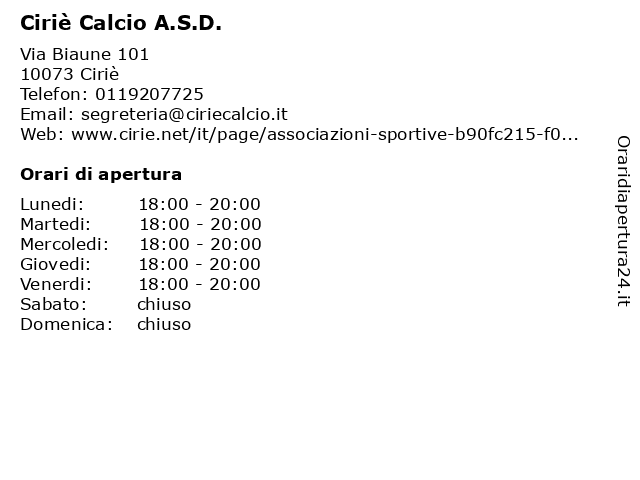 | Giovedi | 18:00-20:00 |