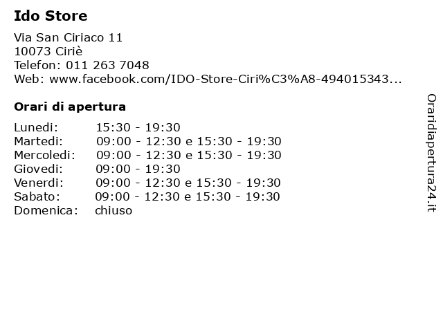 Sabato | 09:00-12:30 e 15:30-19:30 |