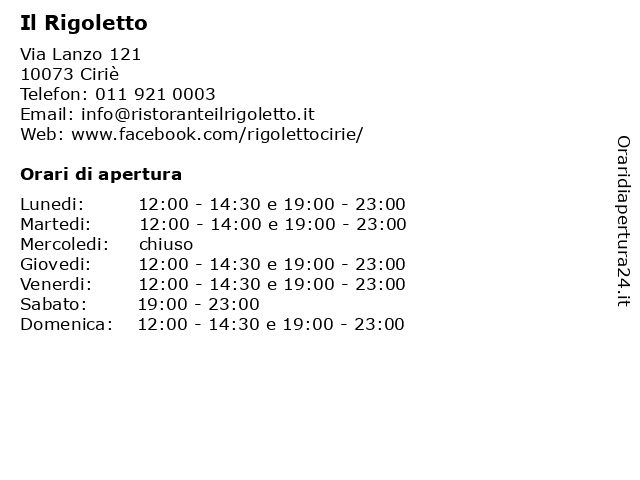 Domenica | 12:00-14:30 e 19:00-23:00 |