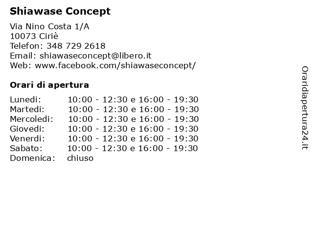 Lunedi | 10:00-12:30 e 16:00-19:30 |