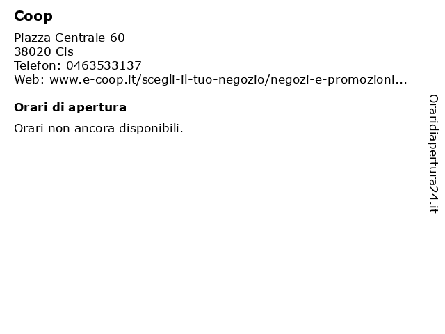 1 Coop (distanza: 0,03 km) Piazza Centrale 14, 38020 Marcena alimentari, coop, discount, spesa, supermercato 2 Coop (distanza: 1,39 km) Via Centrale 36, 38020 Preghena di Livo alimentari, coop, discount, spesa, supermercato 3 Coop (distanza: 1,50 km) Frazione Varollo 42, 38020 Livo Varollo alimentari, coop, discount, spesa, supermercato 4 Coop (distanza: 2,97 km) Via Fontana Nuova 15, 38020 Bresimo alimentari, coop, discount, spesa, supermercato 5 Coop (distanza: 4,45 km) Piazzetta De Bertolini 7, 38023 Cles alimentari, anaunia, comm, coop, dett, famiglia, prod, soc, vari 6 |