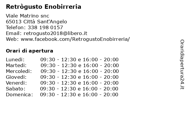 Domenica | 09:30-12:30 e 16:00-20:00 |